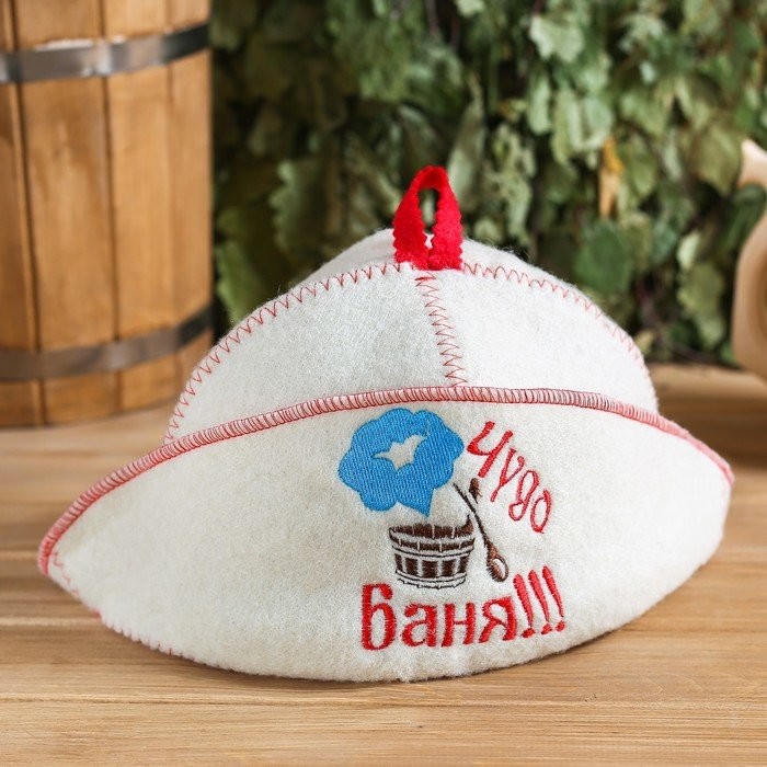 Шапка для бани с отворотом «Чудо баня» с вышивкой, белая, войлок