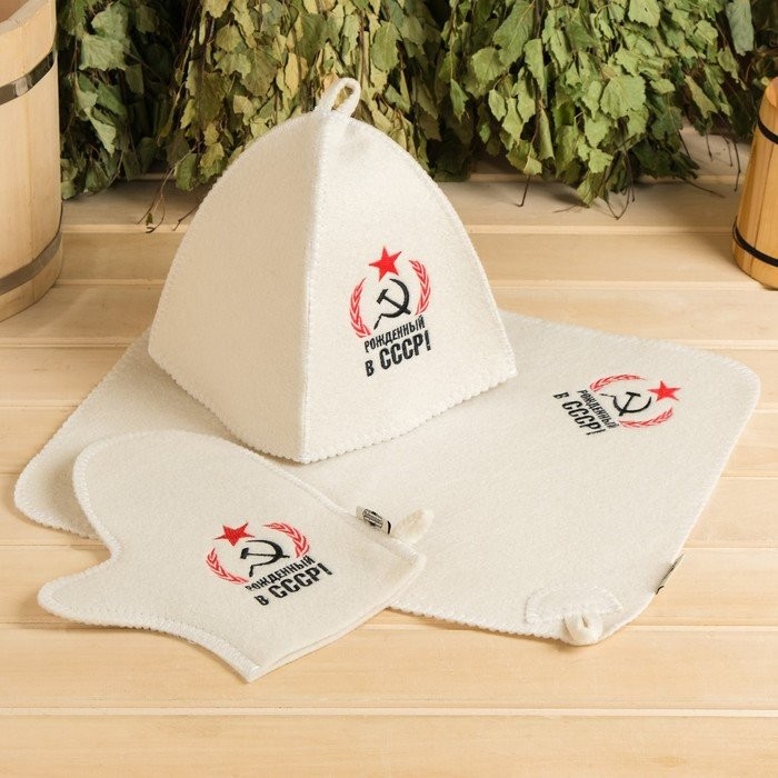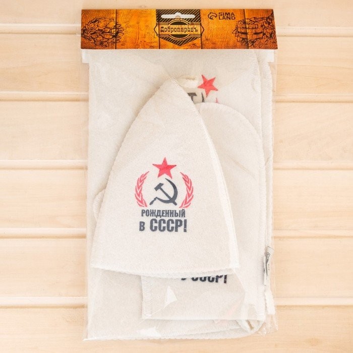 Набор банный 3 предмета «Рожденный в СССР, серп и молот», белый, в плёнке