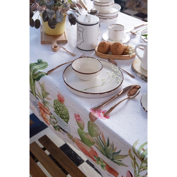 Скатерть Этель «Кактусы» 220×147 см, 100% хл, рогожка 160 гр/м2