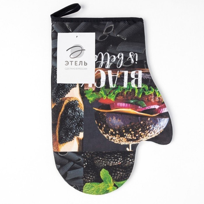 Варежка-прихватка Этель BLACK 20х27см,100% х/л, ватин 250г/м2
