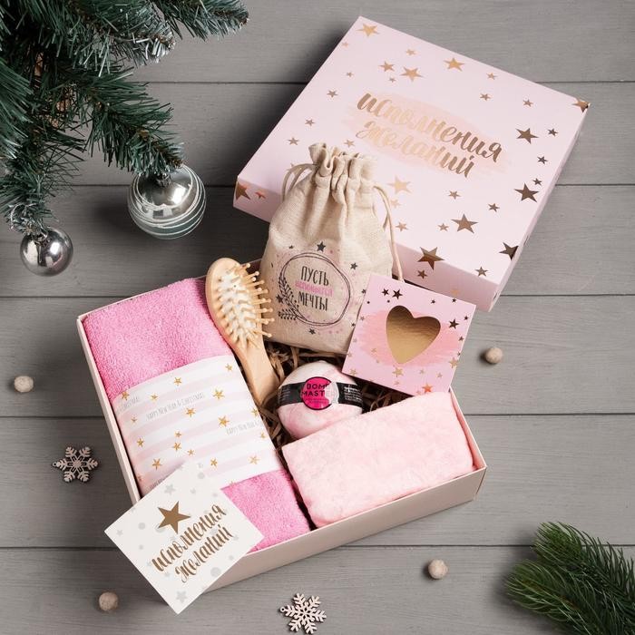Набор подарочный «Исполнения желаний» полотенце и аксессуары (4 предмета)