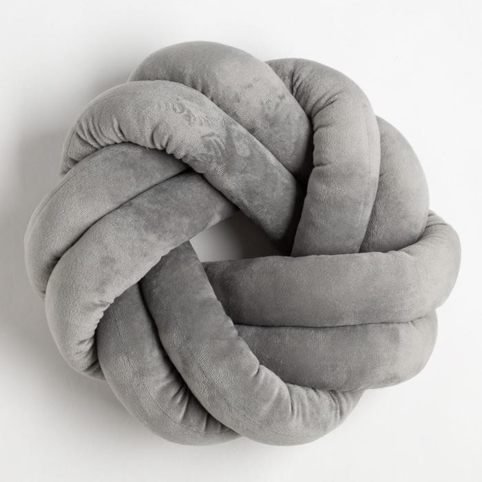 Подушка декоративная узел «Этель», d=33см, цвет тёмно-серый, велюр