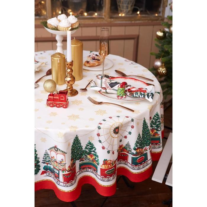 Скатерть «Этель» Новогодняя ярмарка d=150 +/- 3см с ГМВО, 100%хл, саржа 190 гр/м2