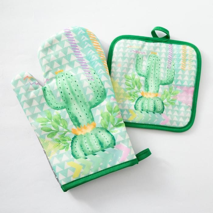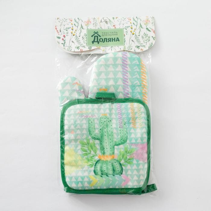 Кухонный набор Доляна «Кактус» прихватка 17×17 см, рукавица 26×16 см