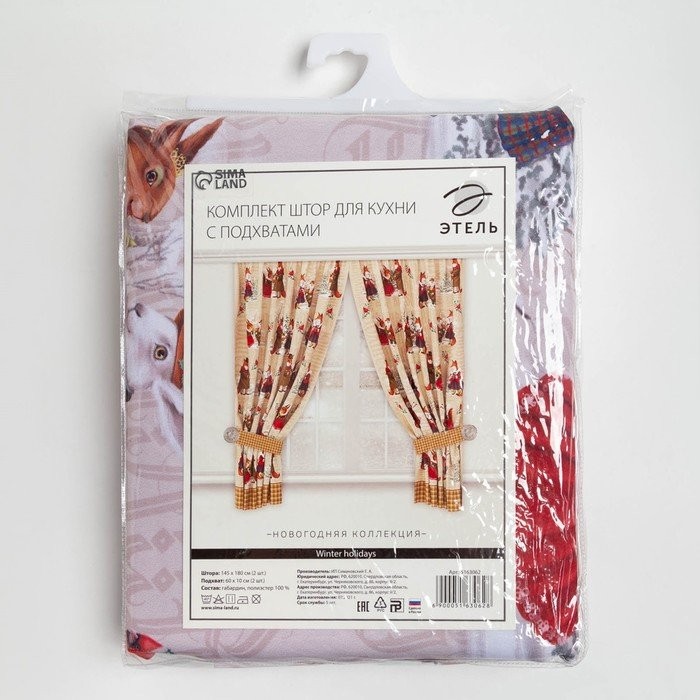 Комплект штор д/кухни с подхватами «Winter holidays» 145х180см-2 шт., габардин