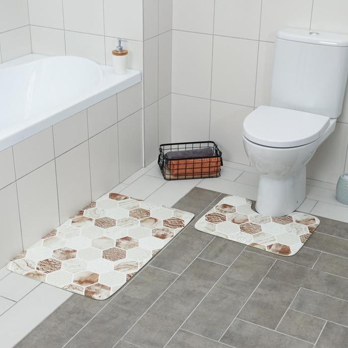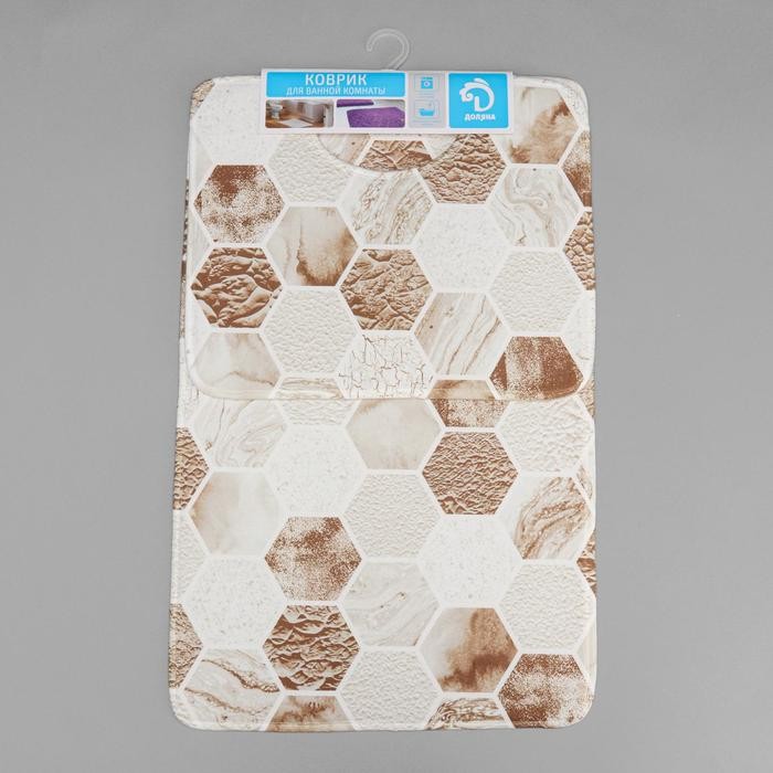 Набор ковриков для ванны и туалета Доляна «Соты», 2 шт: 79×50, 50×39 см, цвет коричнево-бежевый