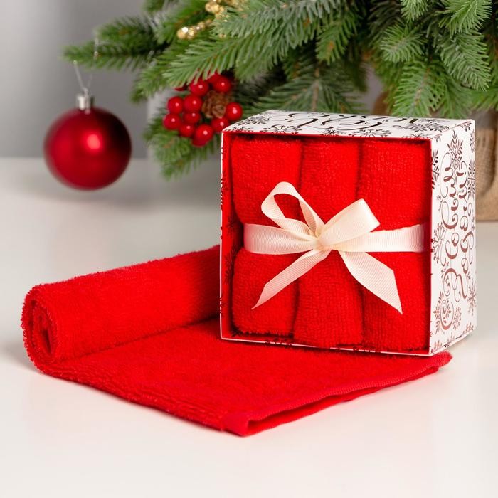 Набор махровых полотенец «С Новым годом» 30×30 см — 3 шт, хлопок 340гр/м2