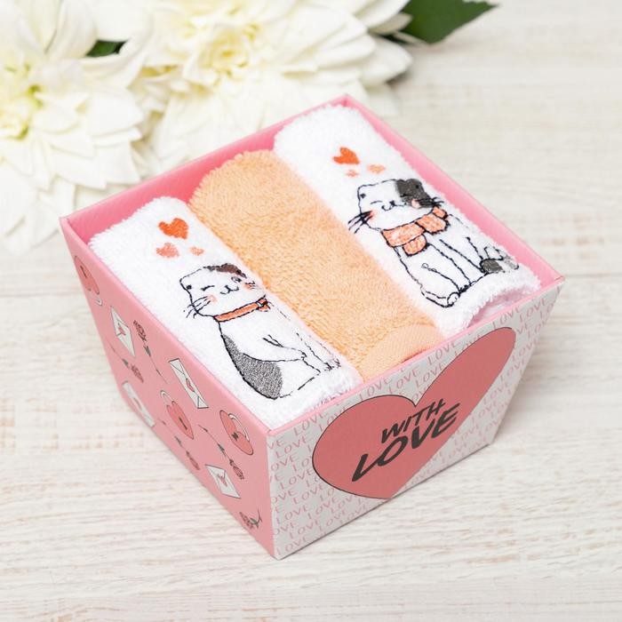 Набор полотенец «Котики» 30×30 см-3шт, 100% хлопок 340 г/м2