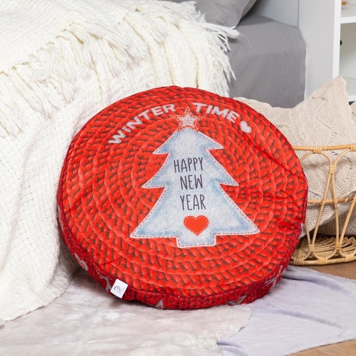 Чехол для пуфика Этель «Новгодняя вязка», d=60 см, рогожка, 100% п/э