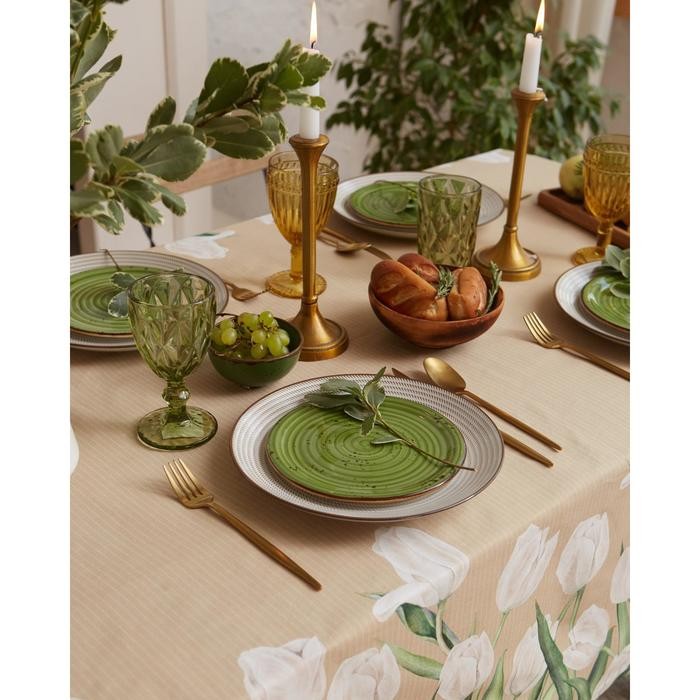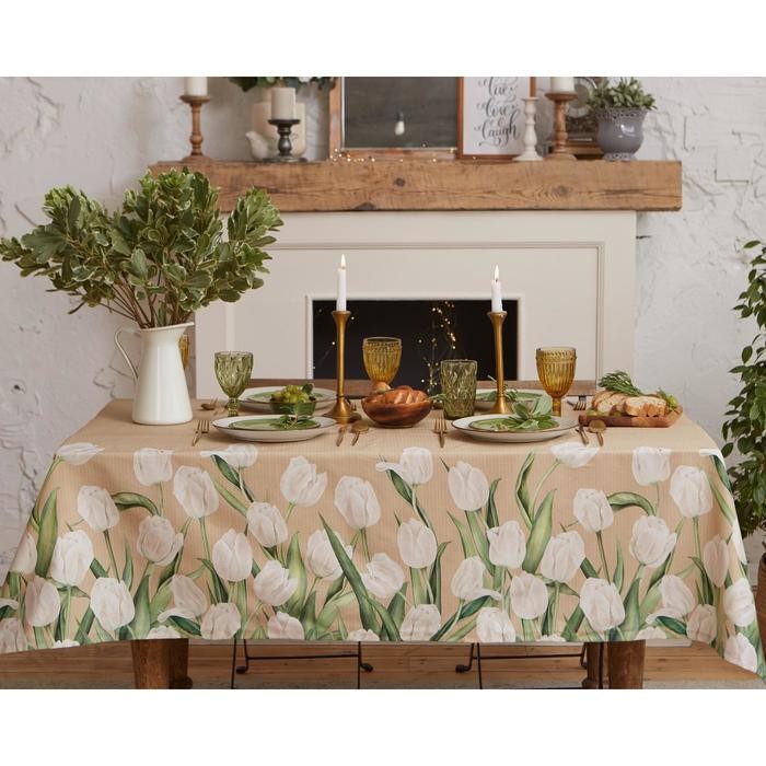 Скатерть «Этель» Белые тюльпаны 149х110см, 100% хл, саржа 190 г/м2
