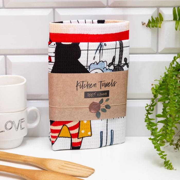 Набор кухонных полотенец Доляна «Котик на кухне» 35х60см-2шт, 100% хл