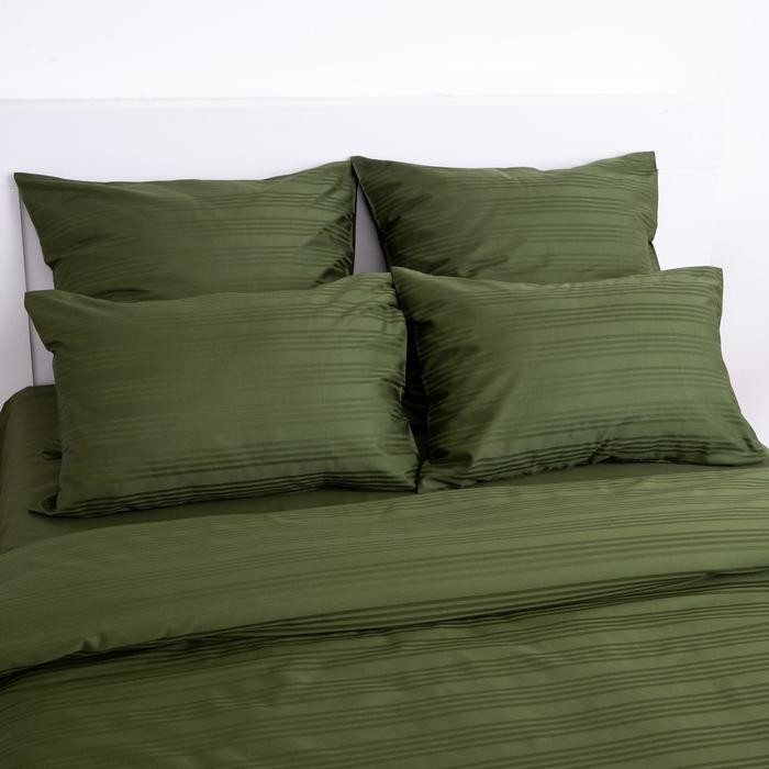 Материал наволочек и пододеяльника: страйп-сатин. Материал простыни: мако-сатин.