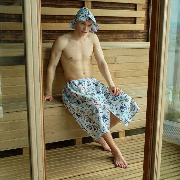 Набор для сауны Этель «Капитан» килт 75*144 см + шапка, вафля 200г/м2, 100% хл
