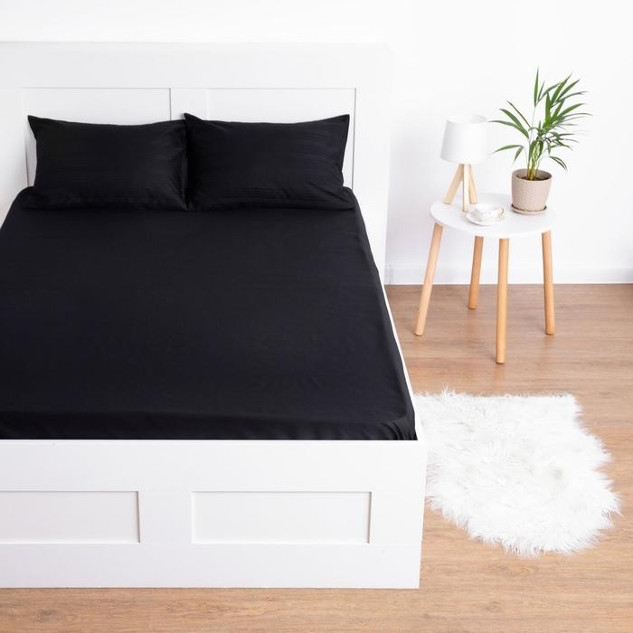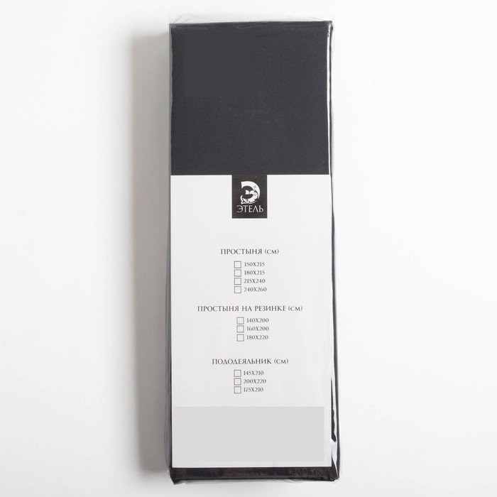 Простыня на резинке Этель 200*220*25 см, цв.черный, 100% хлопок, мако-сатин, 125 г/м²