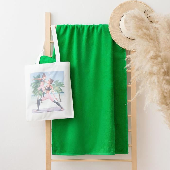 Полотенце в сумке Этель Yoga mom, 70×130 см, цвет зелёный, 100% хлопок