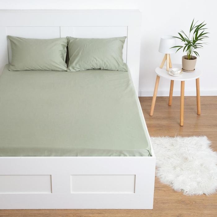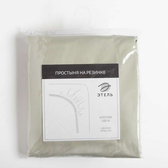 Простыня на резинке Этель 180*200*25 см, цв.оливковый, 100% хлопок, мако-сатин, 125 г/м²