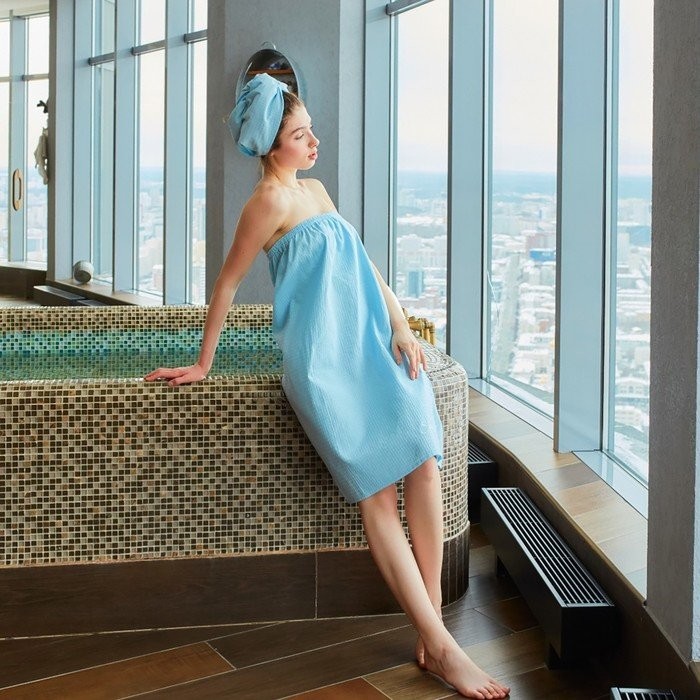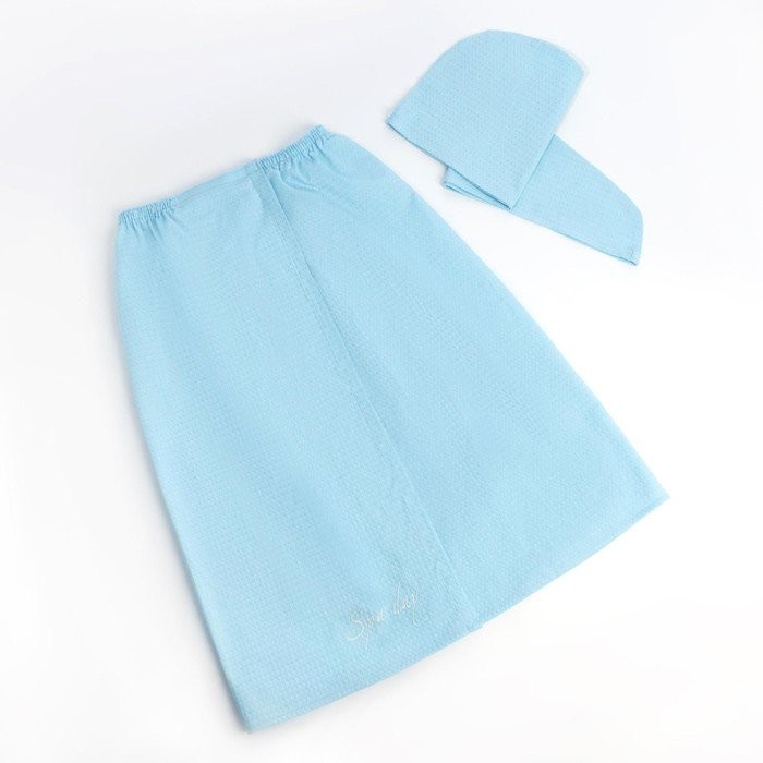 Набор для бани Spa day жен.парео 80×150±4 см, чалма, 100% хл., ваф.полотно, голубой