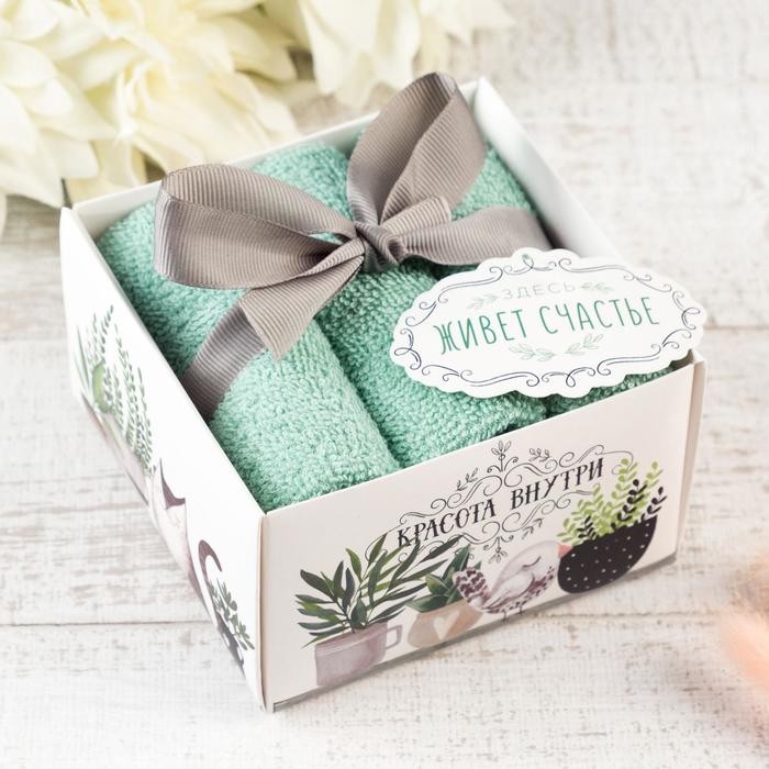 Набор махровых полотенец «Здесь живет счастье» 30×30 см — 3 шт